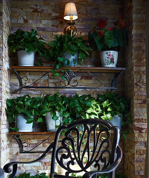 田園美式中戶型陽臺實景圖綠植