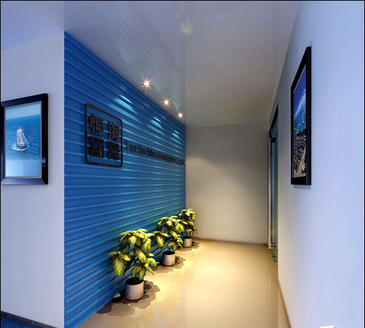 這種風格的裝飾塑造的是一個寧靜優雅的辦公的優良環境,這個公司辦公室裝飾,它的前臺區采用了藍色的背景墻,對于辦公區的裝飾主要采用了海洋的藍色和純潔的白色,藍色象征海洋,常常通過海洋運輸的媒介方式來完成商品的交換,簡設計師給它注入了更多的活力。
