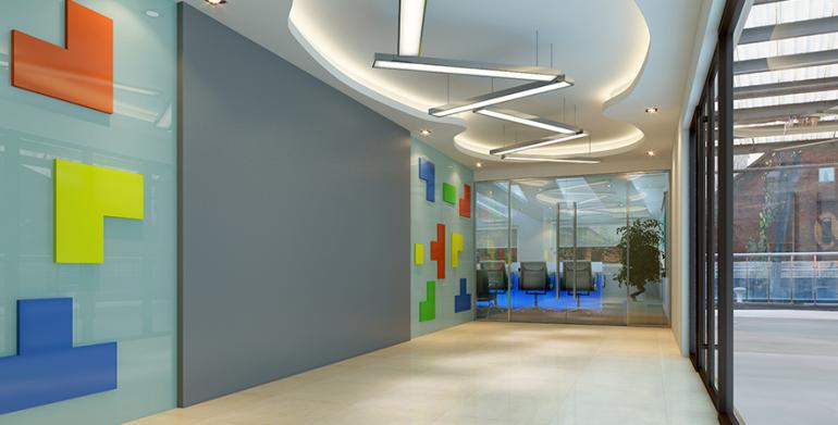 工程說明:整體裝修以現(xiàn)代科技時尚裝修風格為主,裝修色彩明快、輕松活潑。